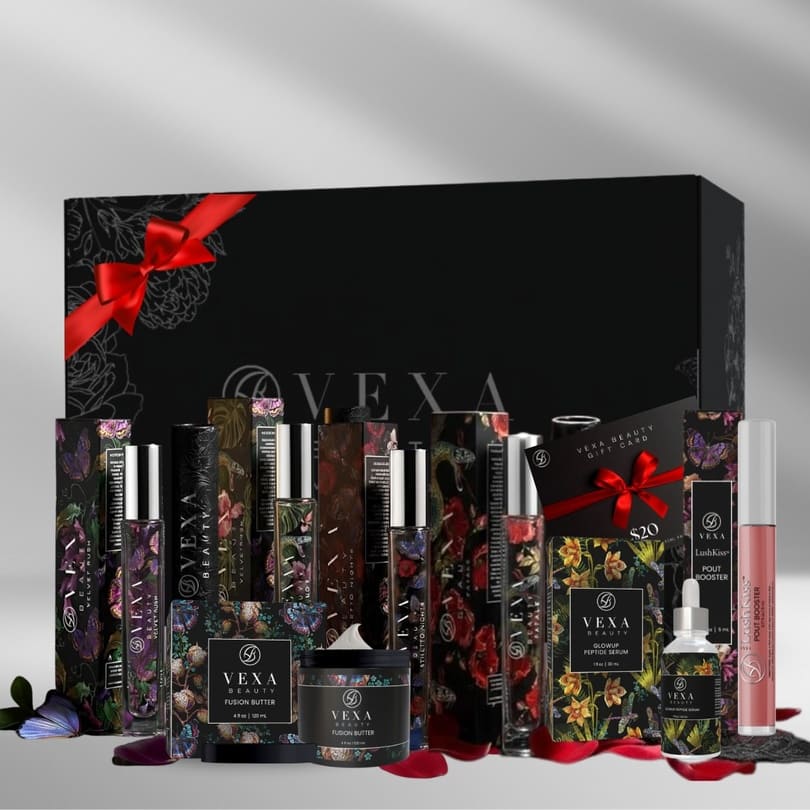Indulge in the entire VEXA Fragrance Collection that includes Velvet Rush, Siren No.9, Stiletto Nights, and Fatale. PLUS a complimentary GlowUp Peptide Serum and a $20 VEXA Gift Card.